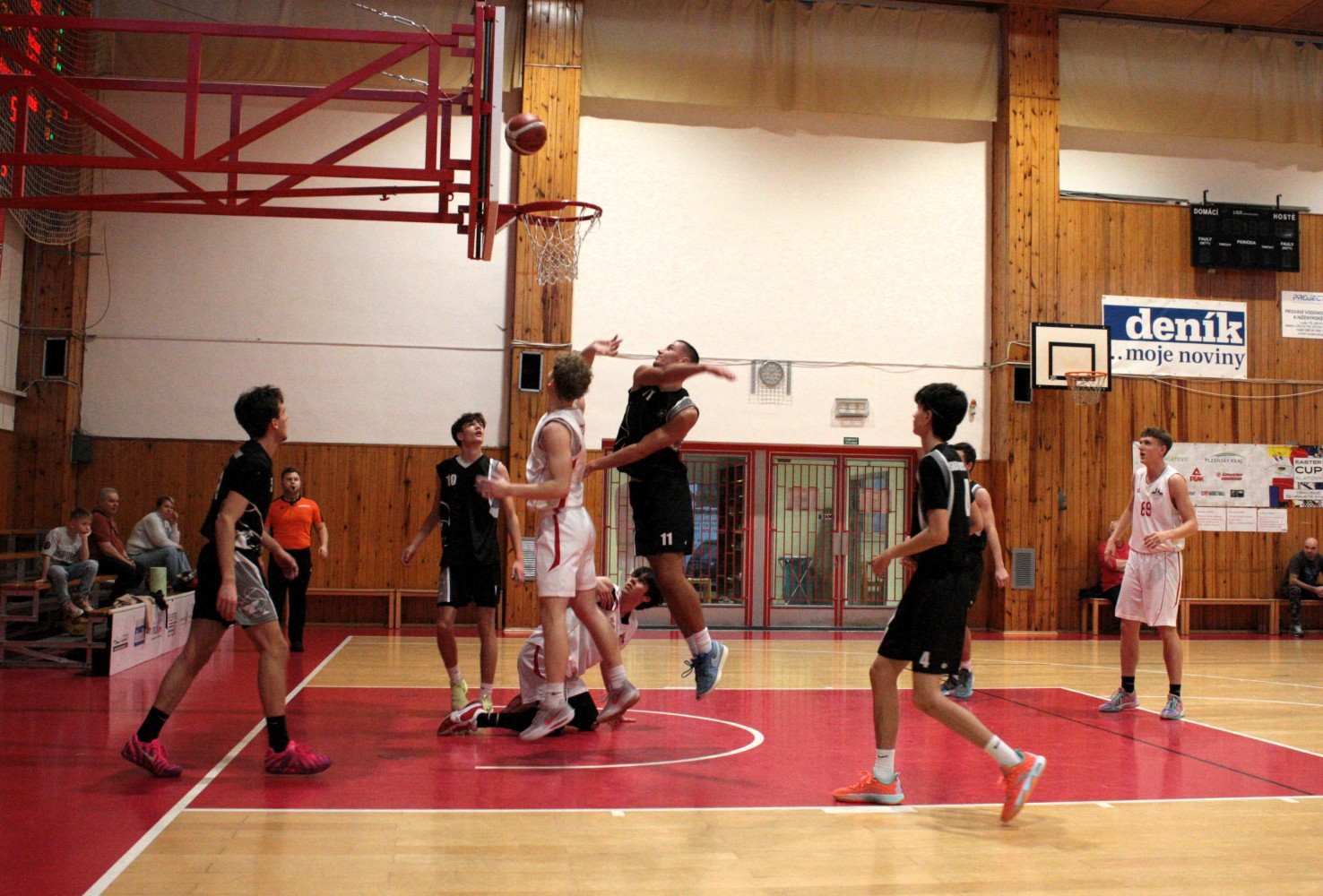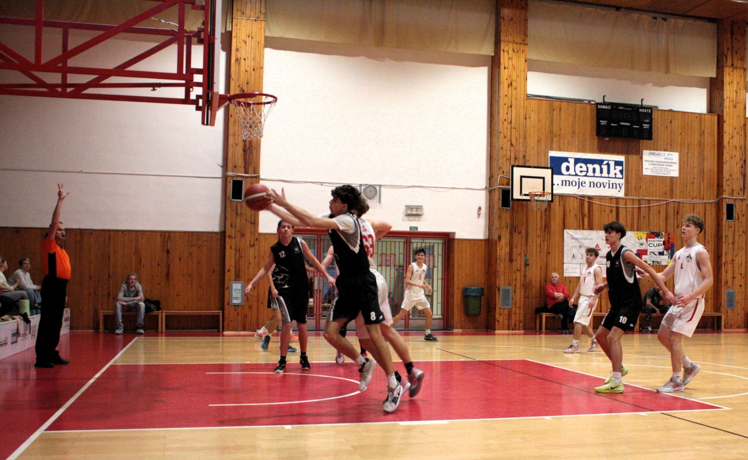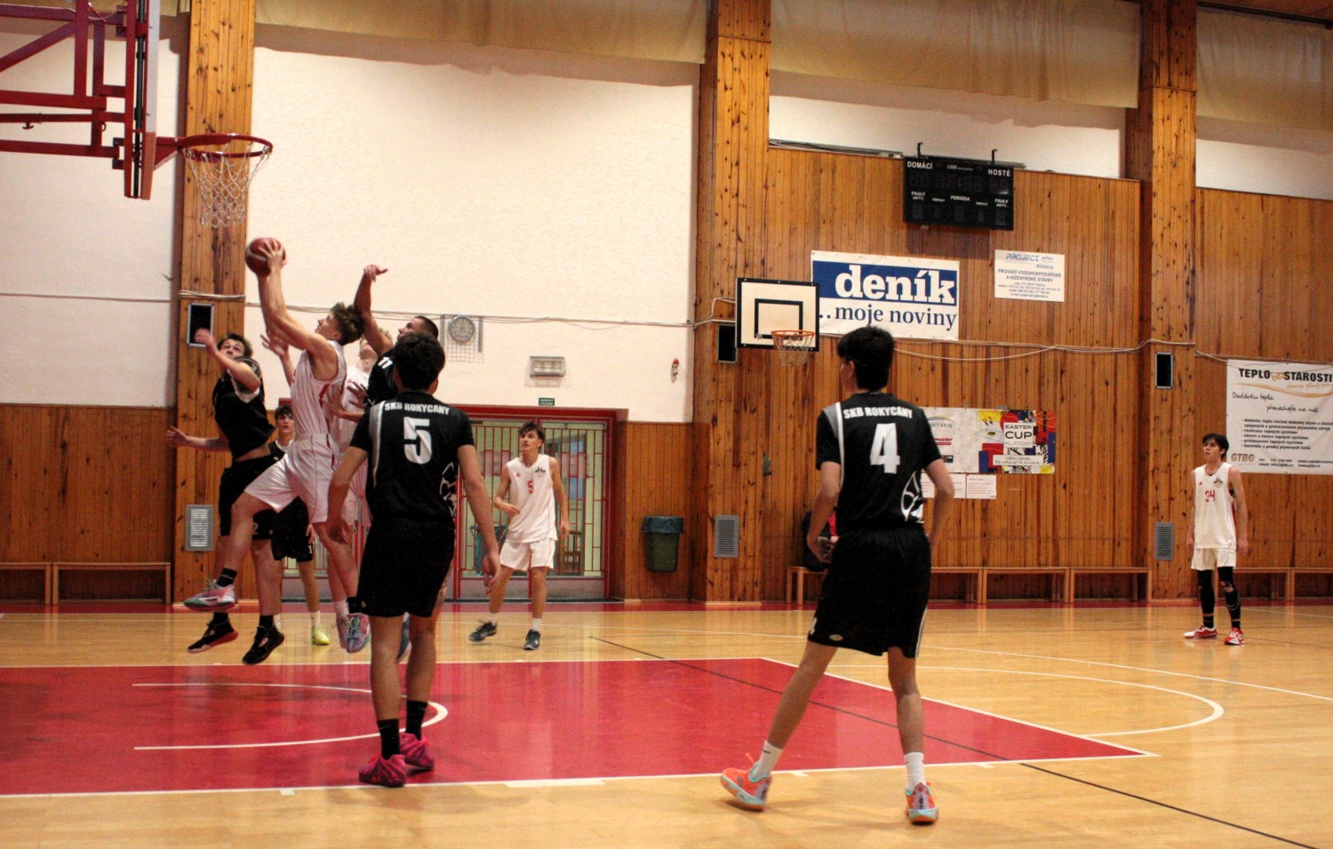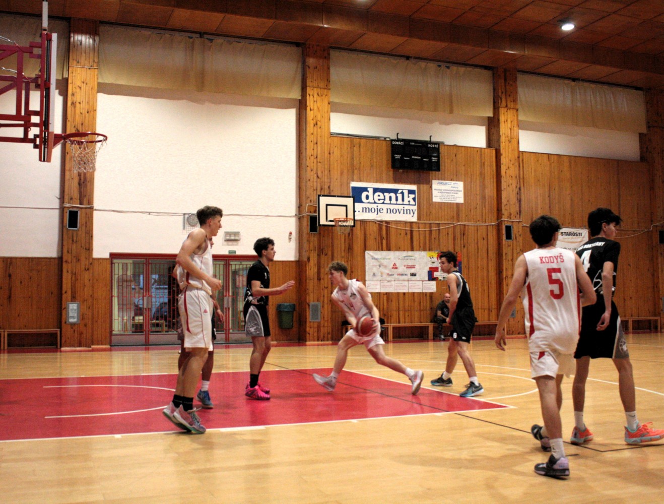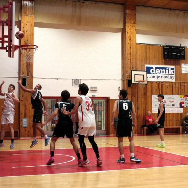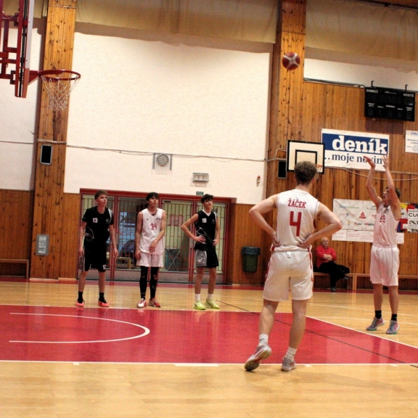 Pětice v čele s kapitánem týmu Žákem, dále s Kotábem, Kavkou, Kodyšem a kadetem Ševčíkem, začala zodpovědně v duchu vědomí, že obrana bude hrát rozhodující roli. Klasicky jen Honza Kodyš ve víru vášně zapomněl na instrukce a první čtvrtinu končil se 3 fauly. Hosté až v poslední minutě pochopili, že náš tým si nemůže dovolit faulovat, když nemá nikoho na střídání a jejich lídr Maňas se 3krát prosadil. Naštěstí 19bodový náskok jsme ve druhé čtvrtině navýšili na 27. Až příliš bylo na našich hráčích vidět, že než na diváky myslí více na vlastní statistiky a byla z toho hra, na kterou se nedalo během 3.čtvrtiny ani dívat. To také trenér hráčům připomenul na začátku poslední čtvrtiny, neboť hrozilo, že někteří z diváků půjdou raději dělat domů užitečnější věci než se dívat na košandu, když přišli na basketbal. A nelitovali. Kapitán Žák vydoloval poslední zbytky sil, zaznamenal v závěrečných 10 minutách minimálně 9 doskoků v obraně a 5 útočných, díky kterým zatížil konto soupeře 15 body, celkově pak 44.